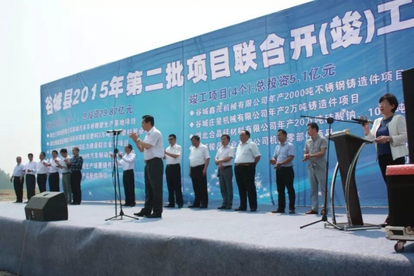 4個竣工項目總投資5.1億元,年可新增產(chǎn)值8億元,實現(xiàn)利稅6000萬元。分別是:總投資1.5億元的谷城鑫茂機(jī)械有限公司年產(chǎn)2000噸不銹鋼鑄造件項目,投資1億元的谷城莊星機(jī)械有限公司年產(chǎn)2萬噸鑄造件項目,投資1億元的湖北合晶硅材料有限公司年產(chǎn)20萬噸硅酸鈉、10萬噸納米二氧化硅和投資1.6億元的谷城駿昌實業(yè)有限公司機(jī)械零部件項目。